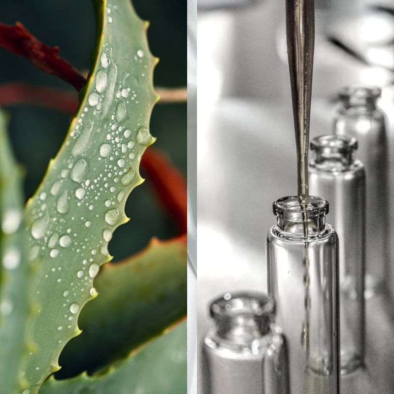 Алоэ содержит биологически активные вещества, ускоряющие обновление клеток. Гидролат способствует восстановлению повреждённой кожи, улучшает её барьерные функции, помогает при мелких воспалениях и пост-акне.
