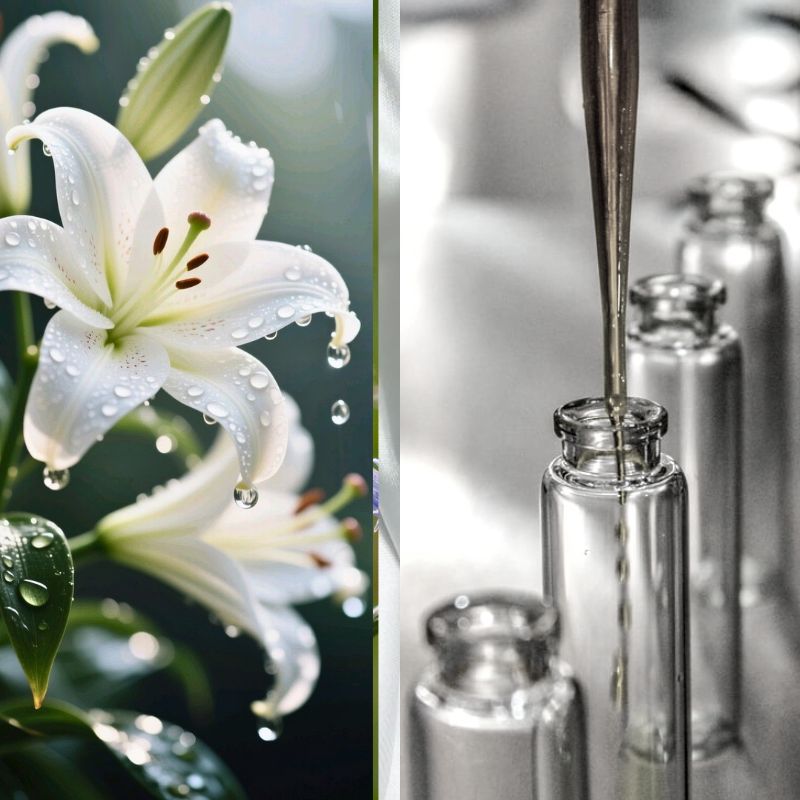 Белая лилия традиционно используется в косметике как компонент, улучшающий ровность тона. Гидролат помогает уменьшить тусклость, освежает цвет лица, придаёт коже более светлый, чистый и «фарфоровый» вид. Подходит при пигментации и пост-воспалительных пятнах.