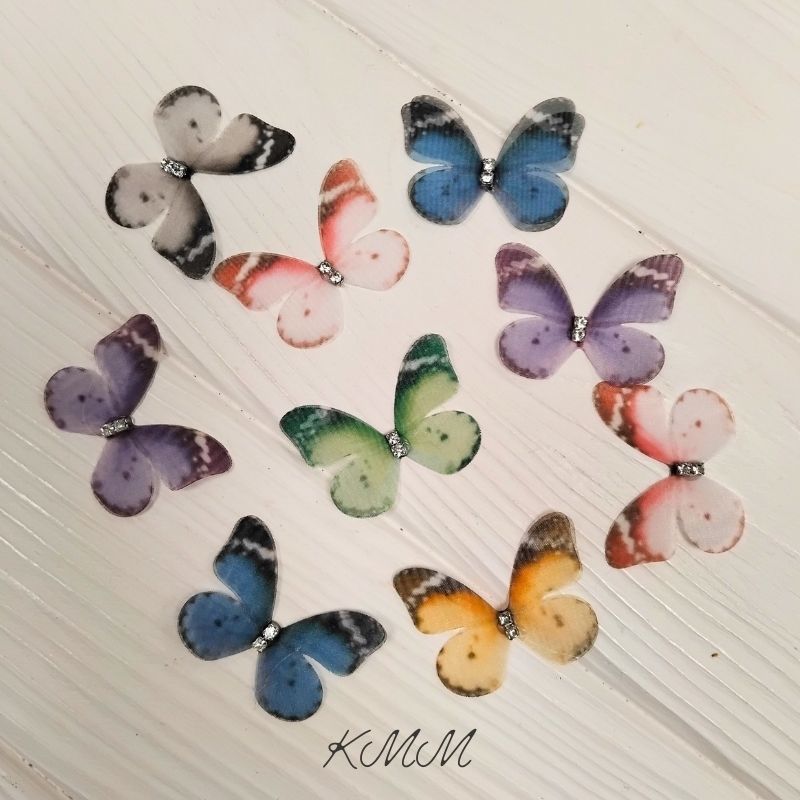 Благодаря тому, что бабочка сделана из двух слоев прозрачной органзы, крылья переливаются и выглядят объемными.