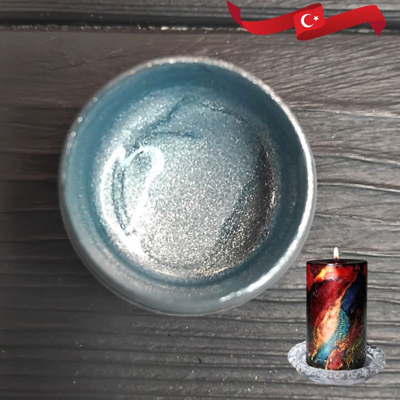 На фото:  пример использования перламутра для окрашивания свечи, цвет-серебро.