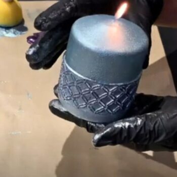 На фото:  пример использования перламутра для окрашивания свечи, цвет-серебро.