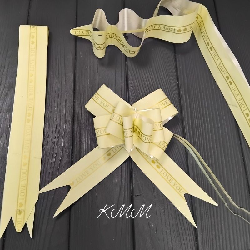 Изготовленный из прочной и яркой полипропиленовой ленты, он легко собирается одним движением – достаточно потянуть за две полоски внутри банта, и из плоской заготовки получится аккуратный объемный бант.