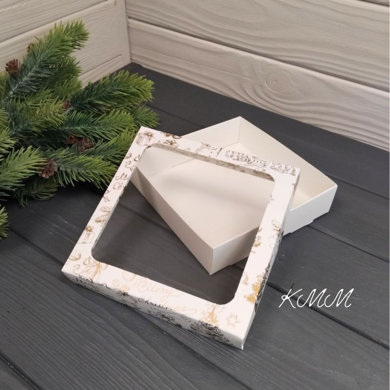 Коробка Merry Christmas с окном золото (Мери Кристмас)