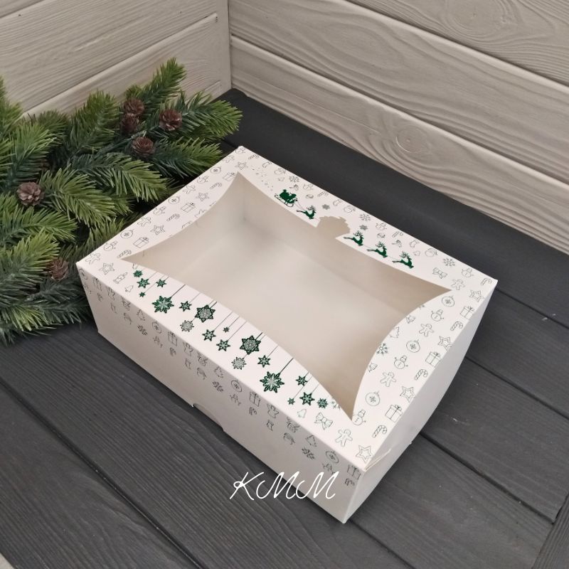 Коробка Новогодняя с зеленым тиснением