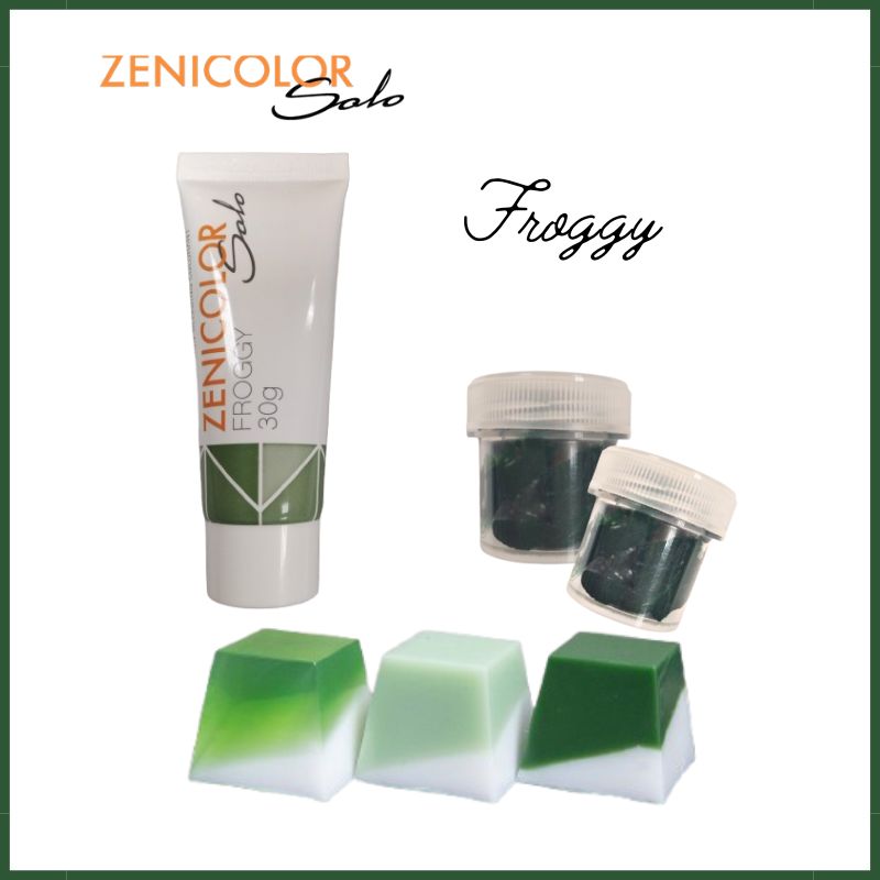 Пастообразный пигмент Фрогги (Froggy), насыщенного зеленого цвета изготовлен словацкой компанией Zeni для окрашивания мыла из мыльной основы.