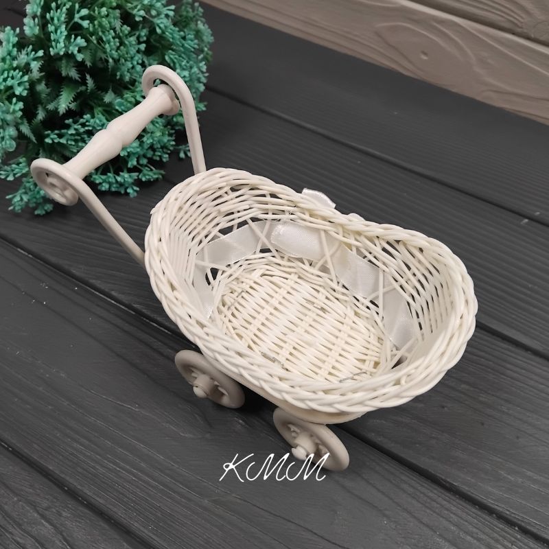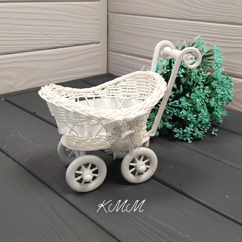 Кашпо Коляска с белой лентой станет прекрасным дополнением и украшением для вашего букета. Композиция будет выглядеть стильно и изысканно. Отличное решение для небольших букетов.