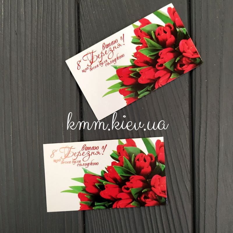 Бирка Открытка Вітаю з 8 Березня! щоб весна була солодкою добавит вашему изделию больше позитива и хороших слов.