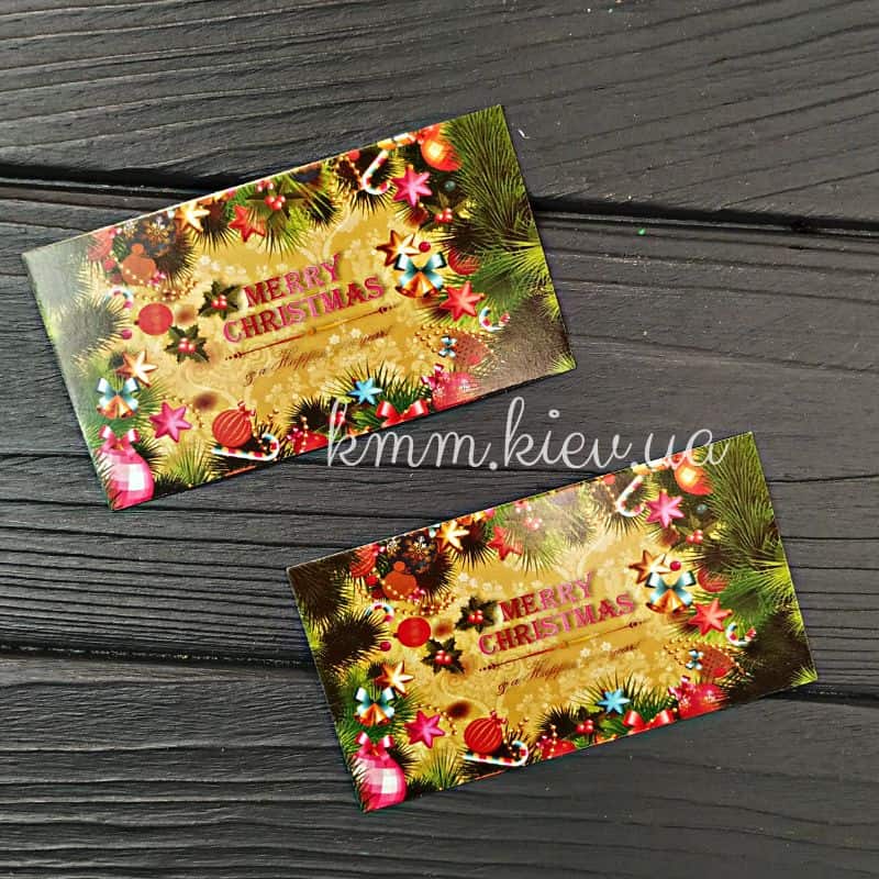 Открытка бирка Merry Christmas and Happy New Year (С Рождеством и Новым Годом) 90ммх50мм (5шт)