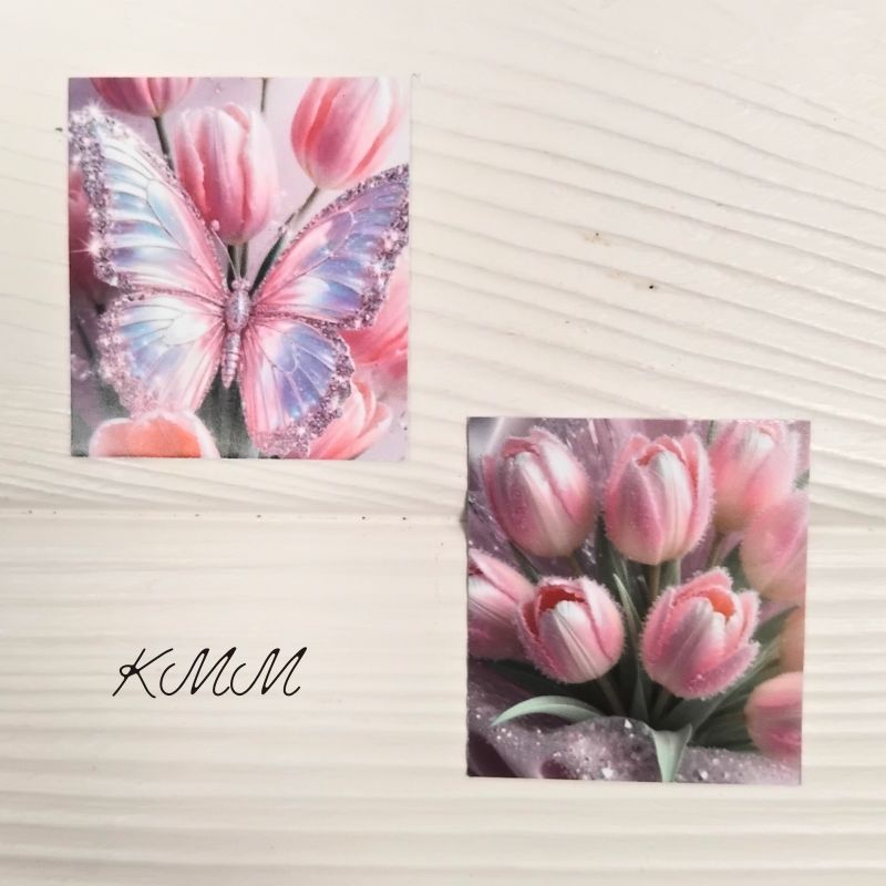 Открытка бирка Тюльпаны и бабочка