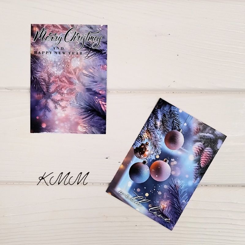 Открытка Merry Christmas and Happy New Year (сиреневая, шарики)