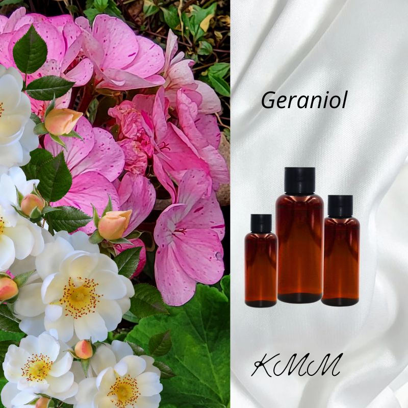 Монотерпеновый спирт, который благодаря своему нежному цветочно-фруктовому аромату с розовыми и свежими нотами, очень популярен в парфюмерии, косметологии и ароматерапии. Используется как верхняя и средняя нота. Обладает антисептическими, антиоксидантными, противовоспалительными, репеллентными свойствами.